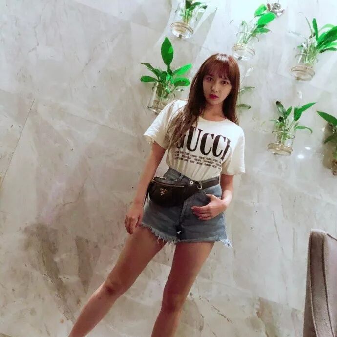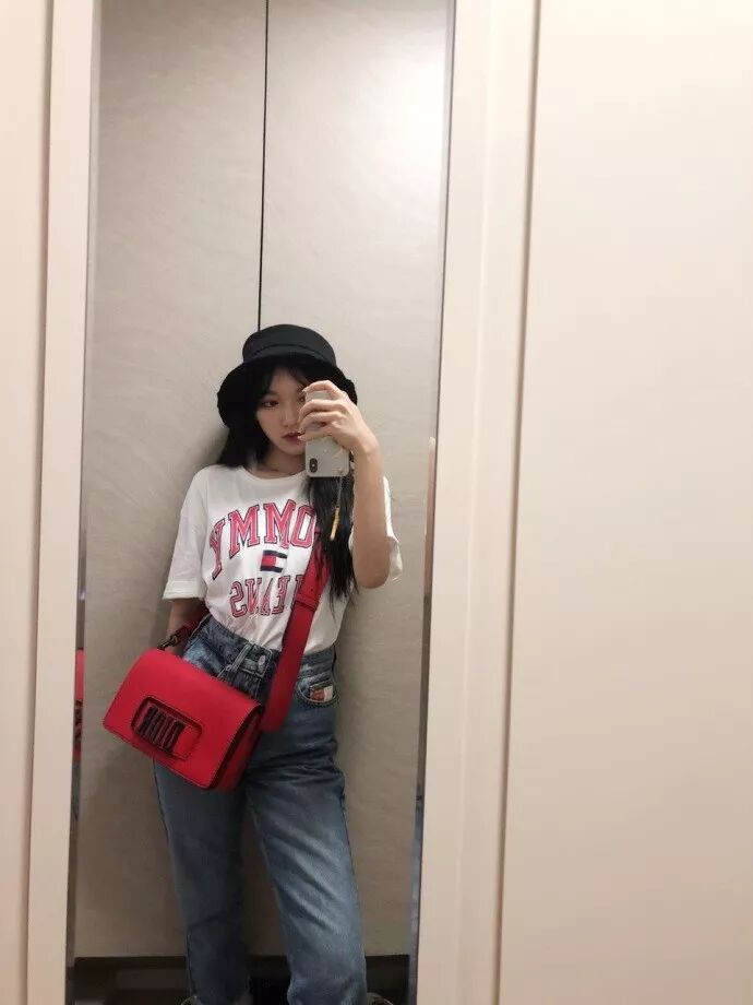 ▲程潇自己的街拍风格偏韩系运动风,也很懂得如何展现自己的大长腿。基本都是T恤+长短牛仔裤或者下衣失踪的卫衣style,很符合她自己青春活力的年纪。