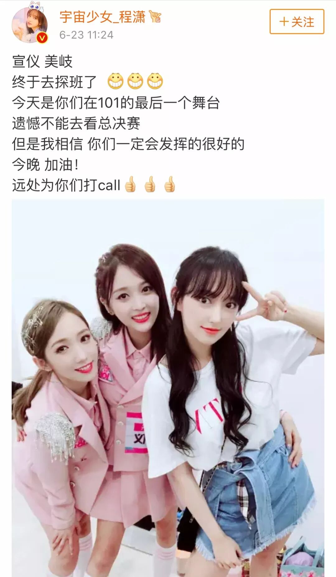▲有趣的是她还和之后两届的冠军鞠婧祎和李艺彤组成过小分队。