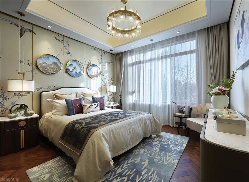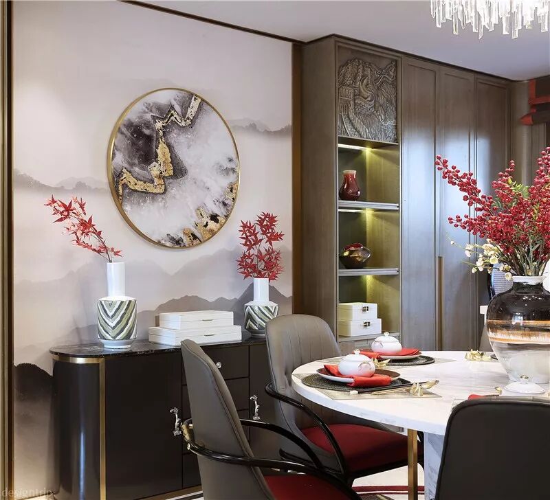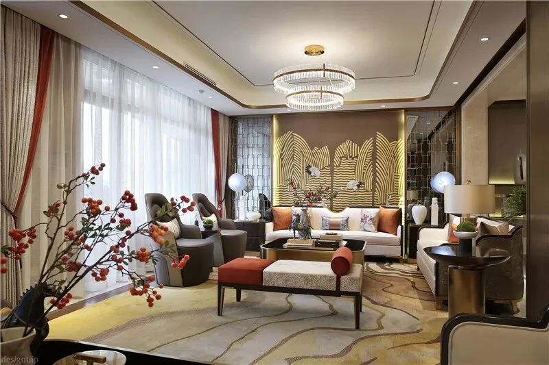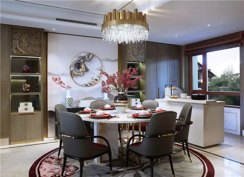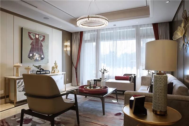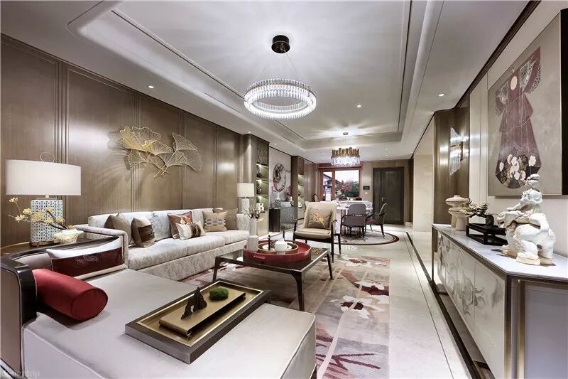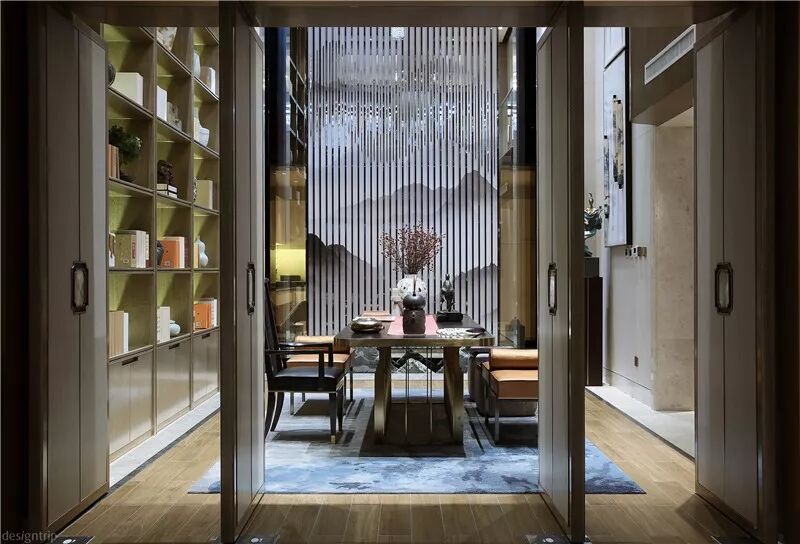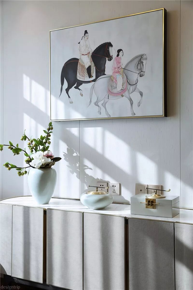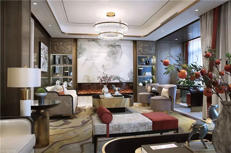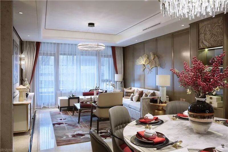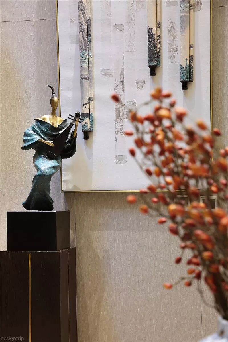 在对异族文化的态度上,盛唐人同样表现出宽阔的气派和态度。在洋溢青春热度的盛唐,人的精神亦焕发出青春朝气,人的素质表现出高品位和多才多艺的特征。是向上的、朝前的,而不是衰退、老气横秋。本案正是依托唐代美学精神,展现东方雅奢的风尚新中式。