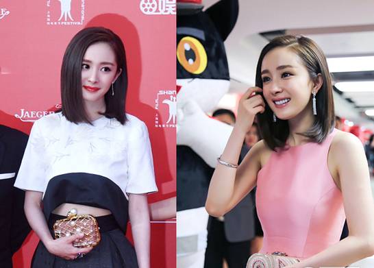 另外一个不得不提的就是辣妈杨幂了,LOB头是杨幂的钟爱,杨幂也比较喜欢把另一边的头发放在耳朵后面,露出一只耳朵出来,精神十足啊!
