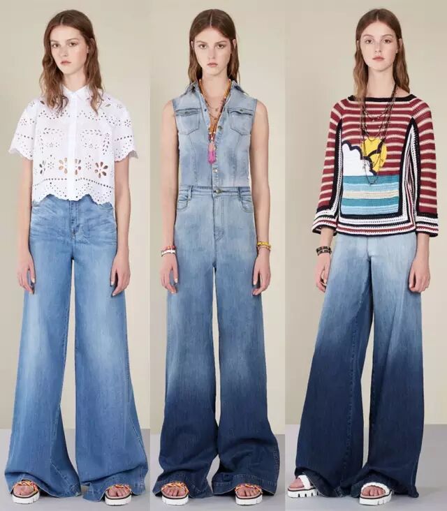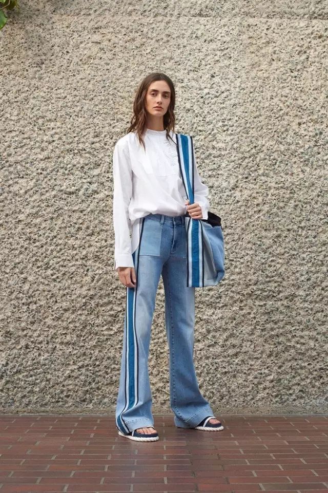 不光是走干练风的Victoria,就连小仙女最爱的Valentino也纷纷穿上牛仔阔腿裤。