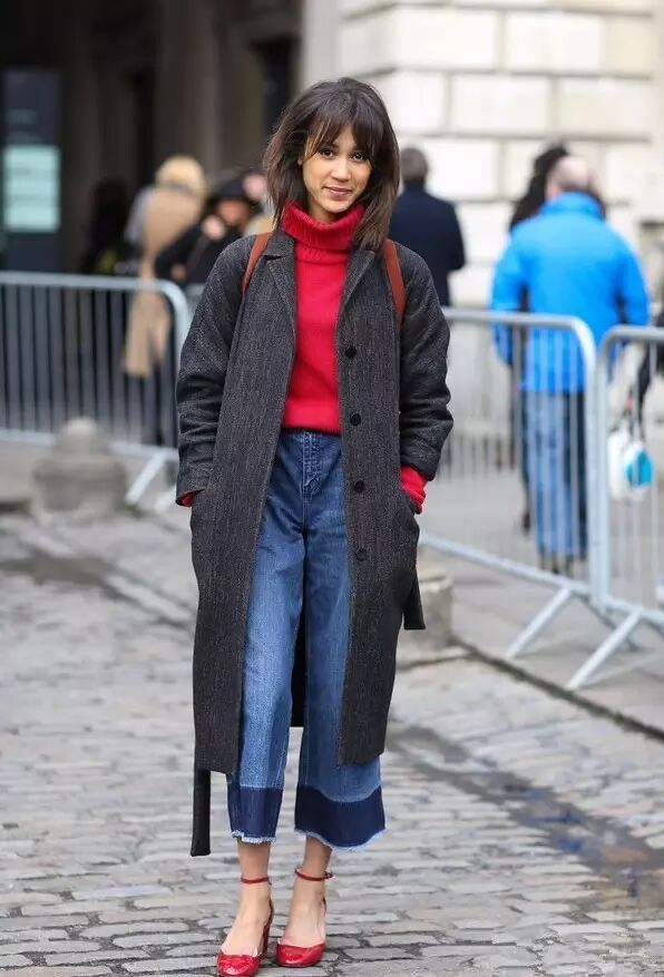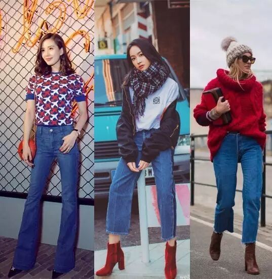 没错,无论是包包、鞋子还是上衣,每一条阔腿牛仔裤的成功背后都有一个红色单品!