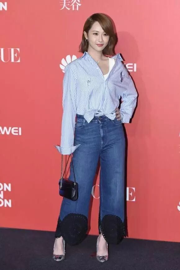 出席活动时,花纹上衣+阔腿牛仔裤+尖头高跟鞋,既干练又随性。在阔腿裤里藏一双高跟鞋,瞬间长高5CM不是梦!