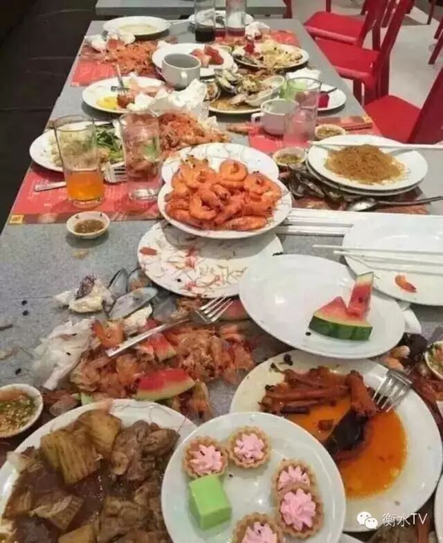 虽说这自助餐是随便人家吃多少,但拿来的食物却不吃完,而是浪费丢弃在哪里?这样真的好吗?