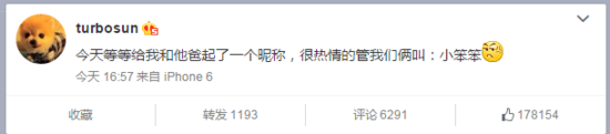 孙俪在微博自嘲等等给她和邓超起了一个昵称叫:小笨笨。网友点评:“对他爸来说,名副其实。”