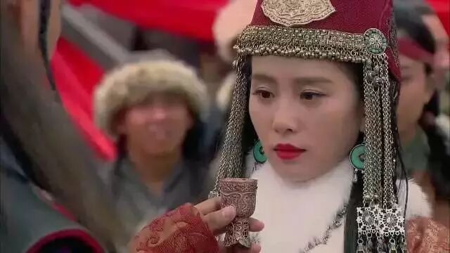 2016年电视剧《女医明妃传》中的少数民族新娘造型,虽然头饰很精致大方,但是整体来看并没有戏中其他造型好。小编没追完这部剧,眼前的马奶酒喝没喝不知道,旁边这个套马的汉子肯定是没戏。真·婚纱篇