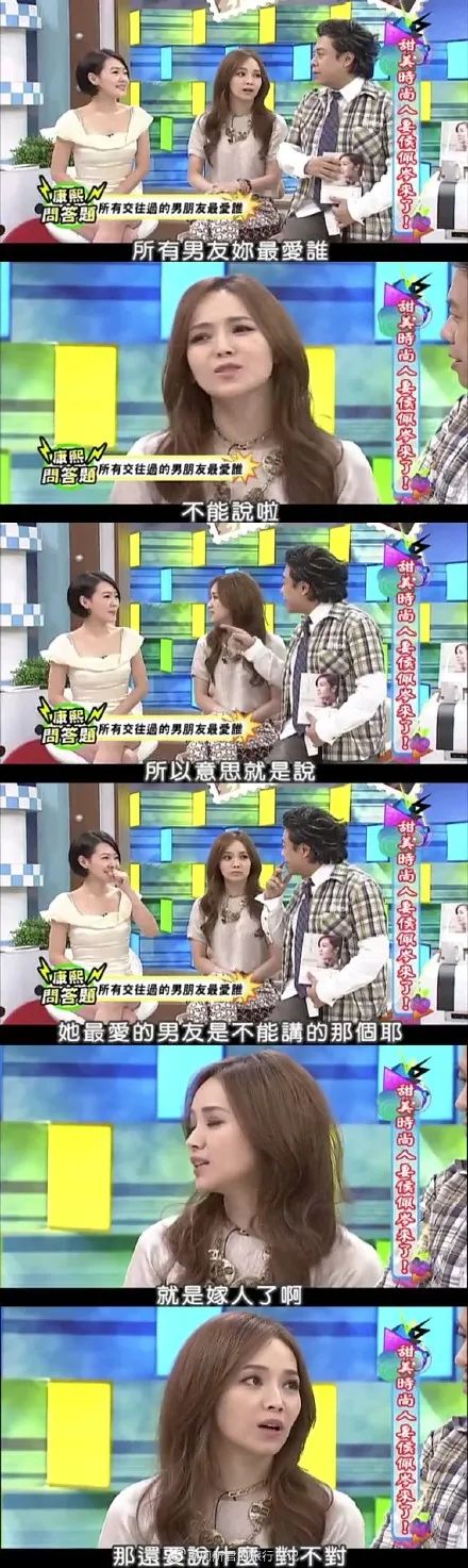侯佩岑婚后有一次上节目,蔡康永问她:所有男友你最爱谁?她回答:不能说。