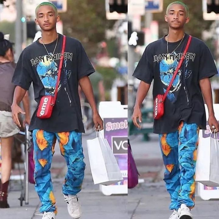 照片中贾登·史密斯穿着图案 Tee 和彩色休裤,原谅色的小平头外搭他时常背着的红色 Supreme 挂包,本身就是“衣服架子”的他看来轻松又时尚,也难怪贾登·史密斯会如此羡慕了。