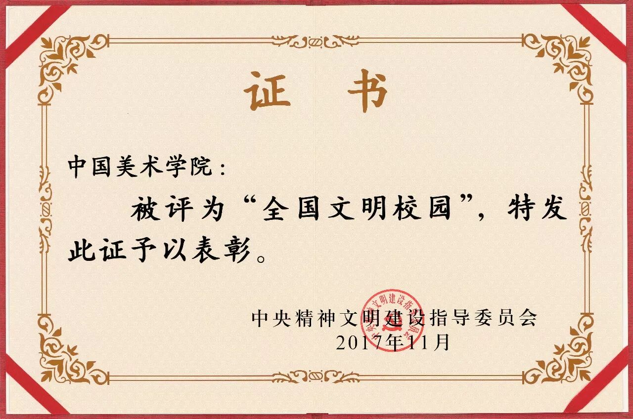 11月,中国美术学院获评首届全国文明校园,为浙江省唯一获评高校。党委书记钱晓芳赴京参加表彰大会并受到习近平总书记亲切接见。中共中央政治局委员、中宣部部长黄坤明为党委书记钱晓芳颁发证书奖牌。