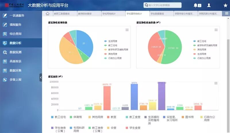 在数据中心基础上,建设中国美术学院大数据分析及应用平台,初步完成校内师生基础信息数据和一卡通、图书馆等相关系统数据的统计、分析,开发自助填表系统、自助打印系统和三维地理信息系统,为师生提供便捷周到的服务。