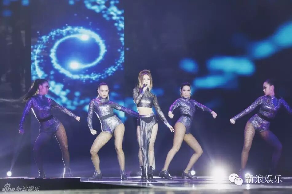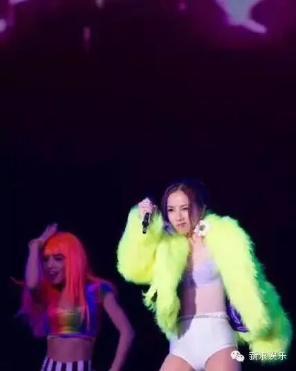 黑色渔网装,搭配超短裤上台表演节目。