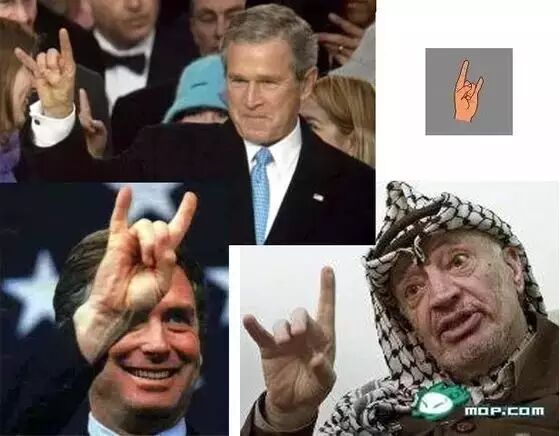 这个手印叫Freemason(共济会)撒旦手印,Freemason(共济会)是基督教的千年死敌,撒旦的组织。
