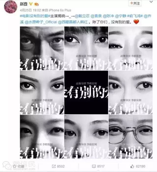 4月25日,当“小燕子”赵薇踌躇满志地推送出《没有别的爱》主演海报汇集的微博
