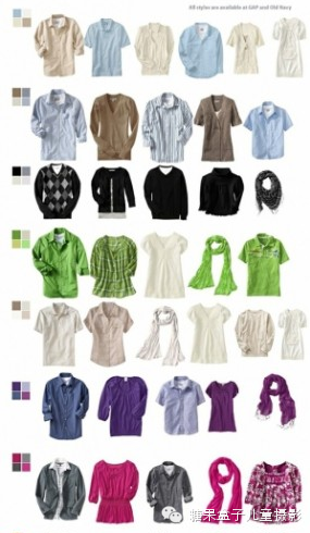 拍摄亲子,服装最好参考如下:全白色、全黑色系搭配、浅灰+白搭配、白+灰+牛仔蓝、白+粉、白+绿、浅棕+浅蓝等等。例如宝宝身上的衣服是粉色,如果在妈妈身上也部分出现粉色的话(粉红、粉蓝),效果会比较协调,也就是说颜色最好在同一色系里走。如下图: