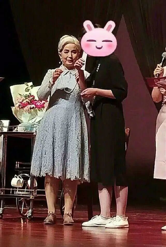 吕丽萍的演技确实是挺不错的,这个时候为了这个节目需要,所以头上戴着一顶白色的头发,不过这个时候身上穿的裙子可能会稍微显得比较年轻,下面搭配的是一双咖啡色的皮鞋,这双皮鞋穿在脚上确实会显得整个人比较矮小!