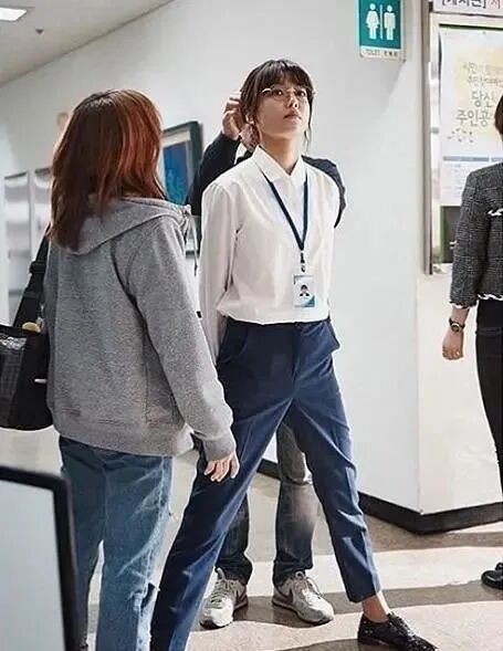 而韩孝周拍摄时为了方便化妆师化妆,也有各种礼仪腿。话说韩孝周真的劈得好下面,真的好配合化妆师的身高XD~