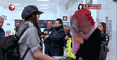 还帮志玲姐姐推行李,志玲姐姐只要抱着花就够了,见到路人还不忘炫妻,和路人说这是我妻子很漂亮吧!!!!!!小廷,你这是闹哪样呀???