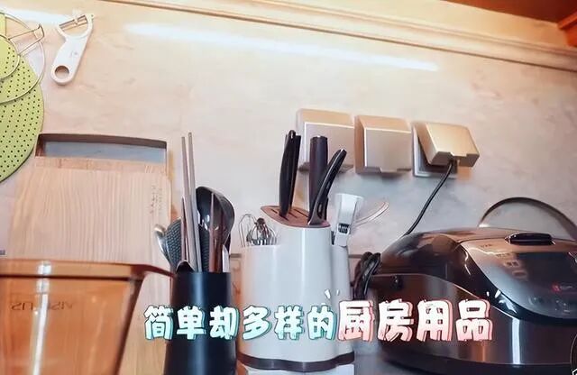看她的厨房就知道了 , 锅碗瓢盆摆得整整齐齐 , 调料刀具一应俱全 , 满满的生活气息。