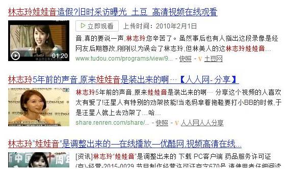 刚开始林志玲的声音也极具特色,典型的娃娃音。因为在某次场合中声音沙哑,被质疑娃娃音是装出来的。而林志玲自己认为从来没想到会因为自己的声音受到关注。