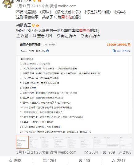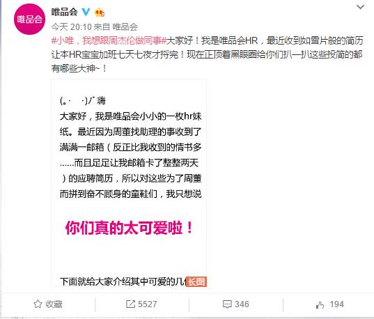 一场以微博为主阵地的,覆盖微信,美拍,B站,贴吧,豆瓣的#小唯,我想跟周杰伦做同事#的网络竞聘会宣告开启。