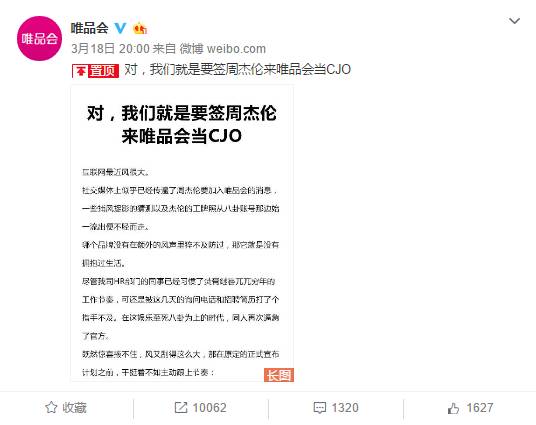其实此刻大家都已经没有了“周杰伦真的要签约唯品会?”的疑惑,明眼人都能有所辨别,“用怎样的方式捅破这层窗户纸”才是人们真正关注的焦点。