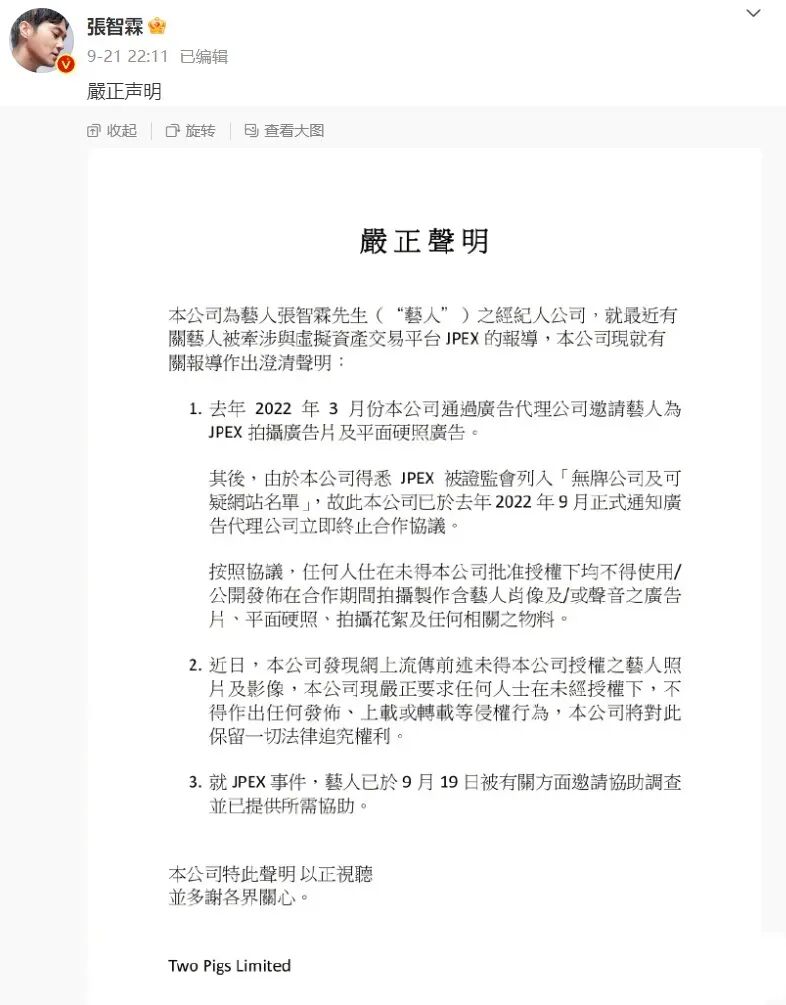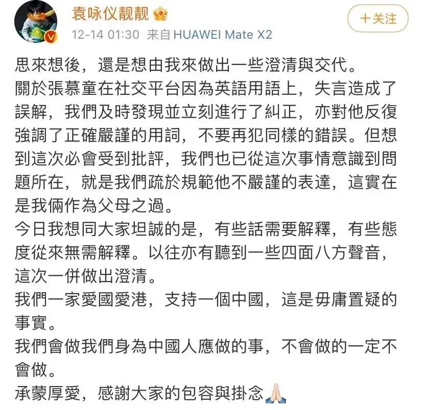 张智霖父子接连“翻车”,儿子做“眯眯眼”讽国人,这不是第一次了... 野生桃er 港台男星 2023-09-26 16:01:26 299 创作不易,用心坚持,欢迎请BaGua喝几杯爱心咖啡!打赏并支持本文 打赏并删除本文 大家好,我是桃子。昨天写的恶魔孩子,是因爸妈无教育,今天又来了一个恶魔星二代,真的再次把桃子气的老血吐了出来。更有意思的是,父子俩此次是接连翻车,真的是“青出于蓝而胜于蓝”。父亲前脚被带走,孩子后脚涉嫌“种族歧视”被痛骂,就连母亲也无法逃脱干系,这一家三口真能作妖。前段时间,香港歌手张智霖突然登上了热搜,这次却不是往日的风光,而是一条狼狈不堪的消息,据港媒爆料,张智霖因为牵扯到一起“欺诈”事件中,从而被警察蜀黍带走进行调查,目前这件事情仍在持续发酵中。据悉,张智霖曾在2022年3月的时候,通过广告代理公司被邀请为JPEX拍摄广告以及平面照,这家名叫JPEX是一个虚拟资产交易平台,公司成立于2020年,在进入香港后开始利用各种渠道宣传,吸引投资者入局,根据警察蜀黍的调查结果显示,这个线上平台并未获发线下实体店牌照,属于无照经营,而且该平台也没有向证监会申领在港的虚拟资产平台牌照,那张智霖为何还要给无照公司进行宣传呢?答案就是该公司给了一笔价值不菲的广告费,从而让张智霖根本没有调查和研究该平台是否正规,此事被爆料出来后,张智霖的经纪公司便在第一时间给到了回应,称张智霖在拍摄后两个月时,才得知该公司无照经营,于是便通知JPEX不得使用张智霖的肖像进行任何宣传,但JPEX不听劝,总而言之就是在撇清二者的关系,不过,据网友透露,终止合作还不是张智霖或广告代理公司主动的,反而是JPEX提出的,这就很尴尬了。随后不少网友好奇表示,张智霖就那么缺钱吗?为何要“饥不择食”的选择接广告?这就不得不提到他的老婆袁咏仪了,要知道袁咏仪可是公认的爱某仕大户、行走的野生代言人。这下网友们就明白了,原来赚钱是给老婆买包呢,还有网友曾在悉尼偶遇张智霖夫妇在爱某仕买包,但是对于他们二人来说,买包都是小事,张智霖夫妇的家里连床单都是爱某仕的限量款,极致奢靡,就当张智霖的事情还未落下帷幕的时候,就在昨天他们夫妻二人的儿子张慕童也“翻车”了。9月25日,有网友扒出张慕童早年前在某社交平台上发布的一条视频,内容涉嫌种族歧视,引发了许多网友的热议,据网友透露,这条视频发布在2019年10月,视频中张慕童坐在床上,伴随着音乐伴奏唱起了说唱,歌词中有一句是:“我问他们是否能看见,他们应该知道我给了他们眼镜就变成数学家,他们来自广州”,与此同时,张慕童还用双手按住了眼角,做出了眯眯眼的动作,语气十分轻佻,接下来的歌词更是争议性十足,“他们看见我在吃狗肉,他们说也想要,我有一份浓汤和一份点心,我有两根筷子,没有一根在我的左右”,从歌词中来看,张慕童是在嘲讽广州人眯眯眼,还调侃他们戴上眼镜就变数学家,还吃狗肉。张慕童的行为不禁让网友们想起之前欧美人都是用这种动作来侮辱亚洲人的,而“筷子”一词更是没那么简单,“筷子”曾被某知名辱“花”品牌杜某班纳用来耻笑国人的,其中有一段视频就是一个亚洲模特手拿筷子,脸上还露出戏谑的笑容,称筷子是小棍子形状的餐具,食物则是伟大的某牌披萨饼,对比张慕童的歌词和动作,简直和杜某班纳的视频如出一辙。该条视频曝光后,不少网友认为张慕童这种行为不是第一次了,他之所以变成如今这样,都是张智霖夫妇没有好好管教,曾在2021年12月底时,张慕童就发过一张香港的图片在社交平台上,图上还有一个问题说你在中国吗?他回答道不在。此举一出,迅速引发了舆论争议,网友们纷纷到张智霖和袁咏仪的微博下评论,说他们不管教自己的儿子,对此袁咏仪不得不在凌晨出来替儿子“擦屁股”,并表示他们一家都很爱国,自己儿子是因为英语用词不当才造成了误解。除此之外,早在2014年的时候,张智霖夫妇一起在内地参加了一个名叫《年代秀》的综艺节目,其中有一个环节就是张智霖给张慕童打电话,电话中张慕童用粤语问:“爹地,你去China了?(字幕中用了大陆)”此时张智霖或许是意识到了什么,于是赶紧告诉张慕童说很多人在听你讲电话,但是张慕童根本没有意识到爹地的提醒,再次用粤语问道:“为什么你去China不陪我啊?”虽然当时这件事情过后,没有引起轩然大波,但至今为止这些事情放在一起,总可以详细聊聊了吧。就在张慕童备受质疑的时候,又有网友扒出了张智霖和袁咏仪多次在各个综艺中表示自己很爱国的截图,俗话说身教大于言教,父母对孩子的影响力还是很大的,既然夫妻二人都这么爱国,那为什么能教出这样的孩子呢?算下来只有两种情况,第一种就是张智霖夫妇都是装的,第二种就是他们二人确实没有好好管教自己的儿子。-end- 创作不易,用心坚持,欢迎请BaGua喝几杯爱心咖啡!打赏并支持本文 打赏并删除本文 感谢您的支持鼓励,我会继续努力的!文章地址:用户邮箱:打赏金额:USDT 请输入数字点击”去打赏“,即可进行打赏支持本文章哦 张智霖 发表评论