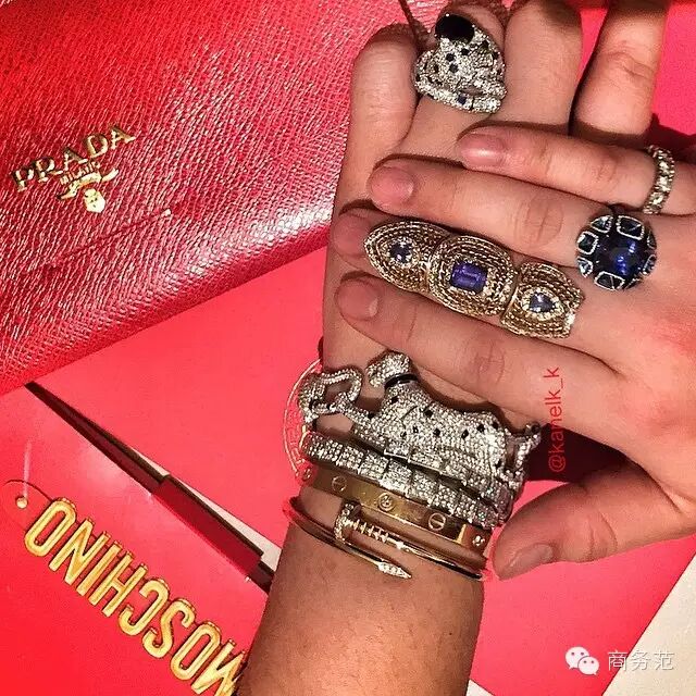 除了手表,富二代网红们还喜欢戴各种首饰。为了与凡人有所区别,他们带首饰的标准要三够——勾搭、够闪、够多。