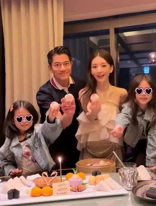 照片里没有舞台装束,也没有光环加持。只有亲友围在一起的热闹气氛,和节日团圆的自然场景。