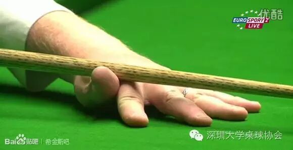 手架杆 打桌球手架杆也是打好球的关键,就象枪械的膛线一样,如果手架杆姿势不当或不稳都将引起击球不准确,一般的手架杆都是手指拱起,拇指和食指交叉或扣成环形使球杆依托手指击球,像这样,注意一定要有力要稳。