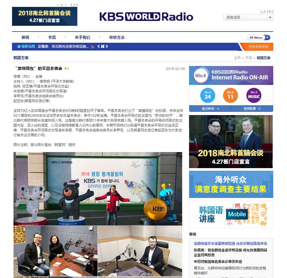 KBS韩国国际广播电台平昌冬奥特别节目网页