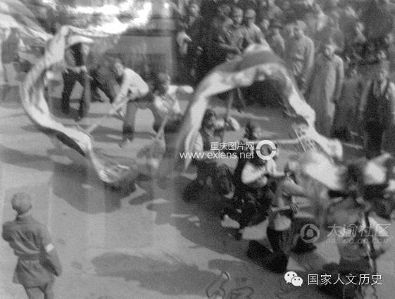 1940年重庆元旦街头龙灯会街头的舞龙表演