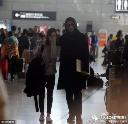 典型的网红脸、网红妆、网红打扮,站在“老公”旁边小鸟依人状