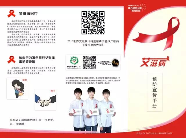 关注艾滋病,关爱艾滋病儿童,从我做起。由TFBOYS暖橙公益特别设计制作的防艾宣传折页,将在青爱工程全国青爱小屋投放。