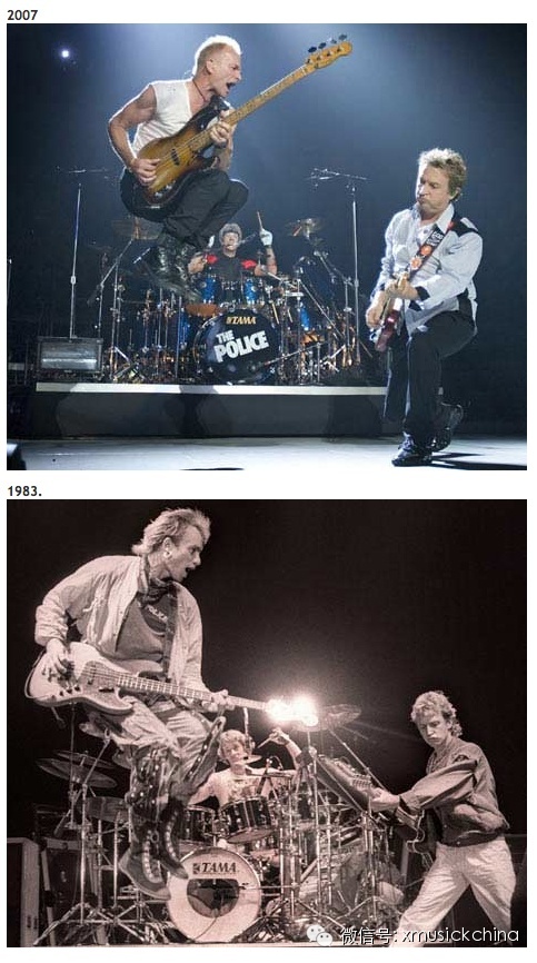 #摇滚照相机# 经典摇滚乐队 THE POLICE(警察)乐队的1983年与2007年的精彩瞬间。80年代红透半边天的警察乐队连发行的精选集《Greatest Hits》当年也登上了英国排行榜第10名。