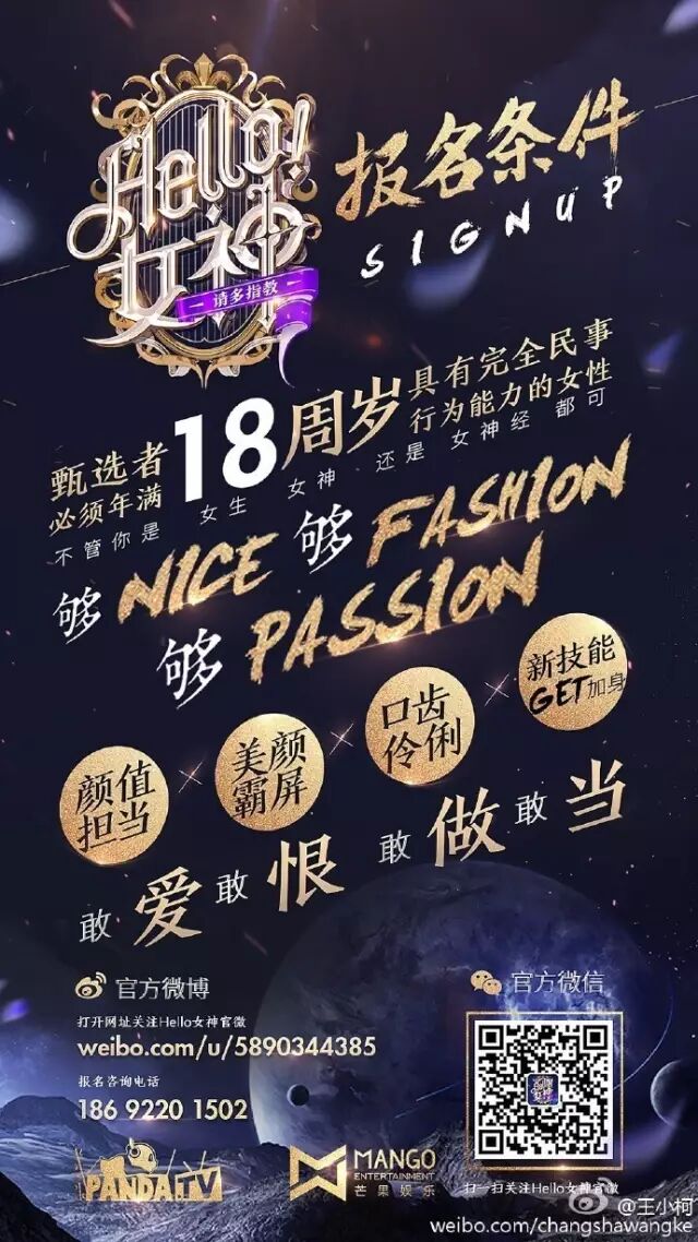 事情的真相到这里基本上就已经浮出水面了,你们的国民老公现身长沙8小时,砸了一个亿软妹币,做了一档新节目叫《Hello!女神》,由芒果娱乐和熊猫TV联合出品。