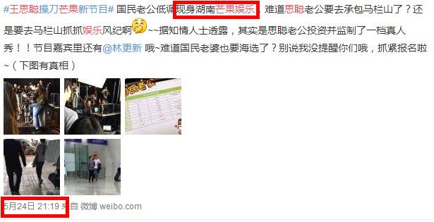 而在21:19爆出的信息中,芒果台则变成了湖南芒果娱乐