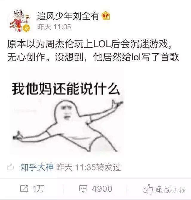 你肯定就这种玩游戏法那周杰伦写歌什么的肯定要荒废是吧,但是人家偏偏就拿出了满腔的热和沉甸甸的爱,给英雄联盟写了一首歌!!!