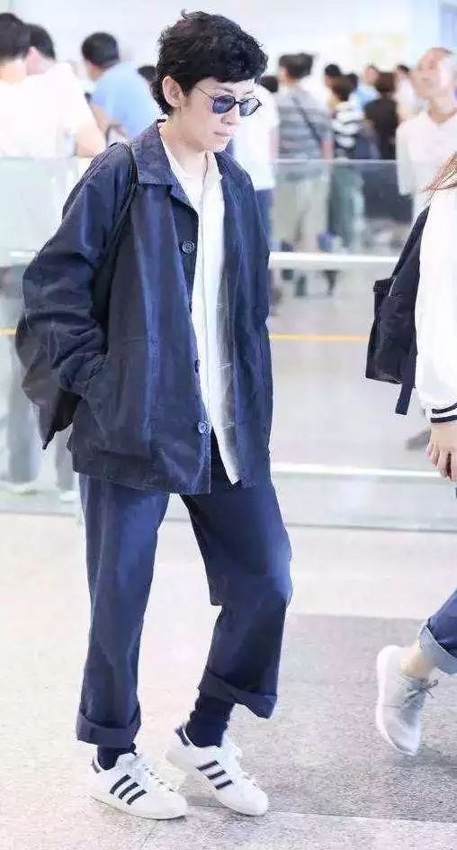一件蓝色的外套看起来非常的帅气,里面搭配了一件白色的衬衫真的显得特别的有魅力的。下半身搭配的就是一条蓝色的阔腿裤了看着很时髦。白色的鞋子简约大方!