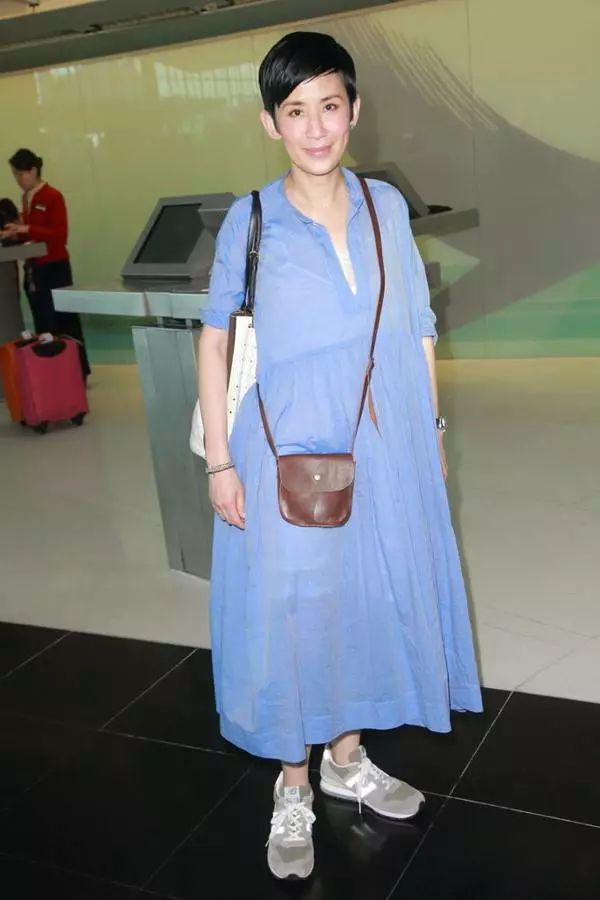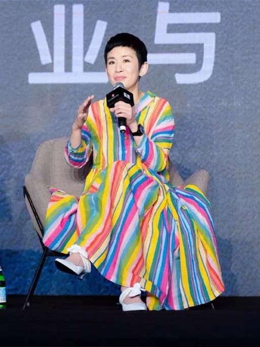 一条五彩的条纹裙显得她整个人看起来会年轻了很多,这个裙子的颜色真的是非常的靓丽。所以对她来说应该是比较减龄的了。可是她打扮的再有女人味看起来也是很老啊!