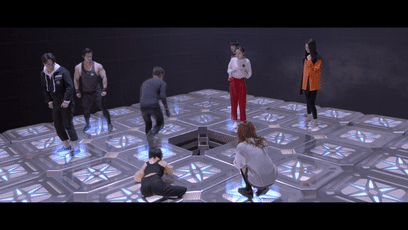 天塌过程中,对应地面光亮格子,会产生可以站立的生存空间,每一次天塌之前有一定时间可以反应,便于玩家可以走入光亮格子里。
