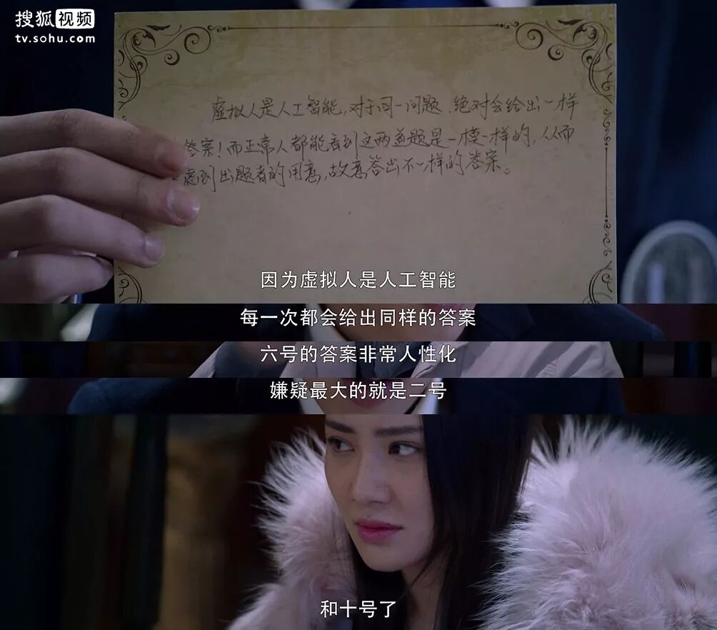 【6号一脸“我很聪明很装逼但有一群猪队友带不动”的侦探大叔】提出一个办法,让声称互相认识的玩家在纸上写出彼此认识的经过。马上就有【9号爱撩妹的死胖子宅男】承认自己为了撩【2号十八线演员】而说了谎,【11号名侦探小夏】刚想随大流认错,不想【7号虚拟人基友】却用略带受伤的语气傲娇宣布“我们之间发生的都是真的,我们才没有说谎呢哼” 说没说谎你的心里还有没有点逼数吗?一个机器人就不能低调点吗?