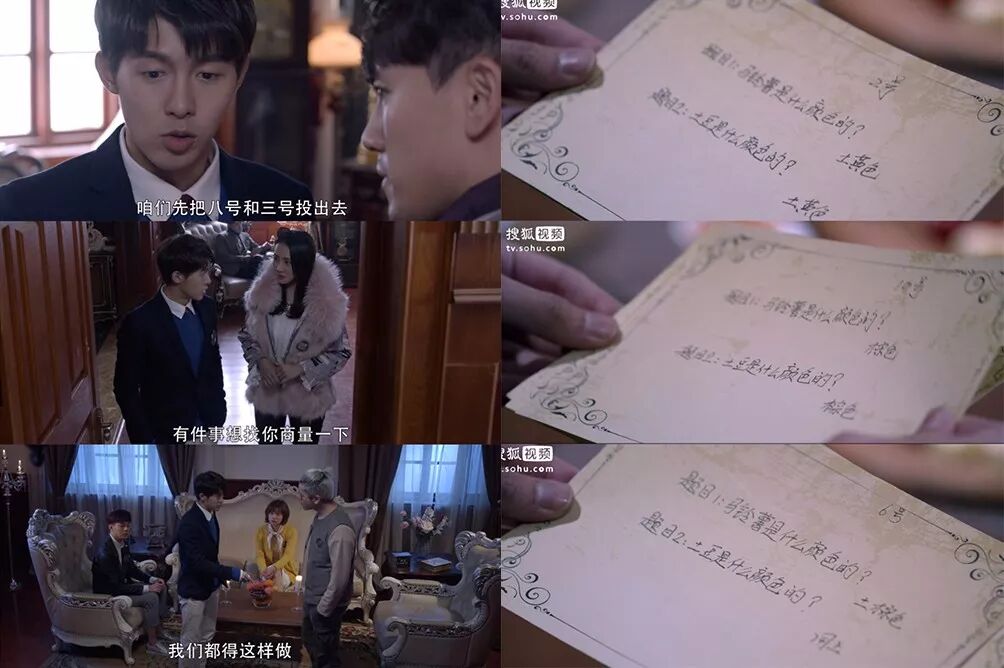 第三晚公投前【11号名侦探小夏】先去搞了点合纵连横的小动作,并在晚宴上出了道土豆和马铃薯分别是什么颜色的题。正常人都知道它俩没个卵区别,却让思虑过深的【6号大叔】中了圈套,写下了不同的答案。