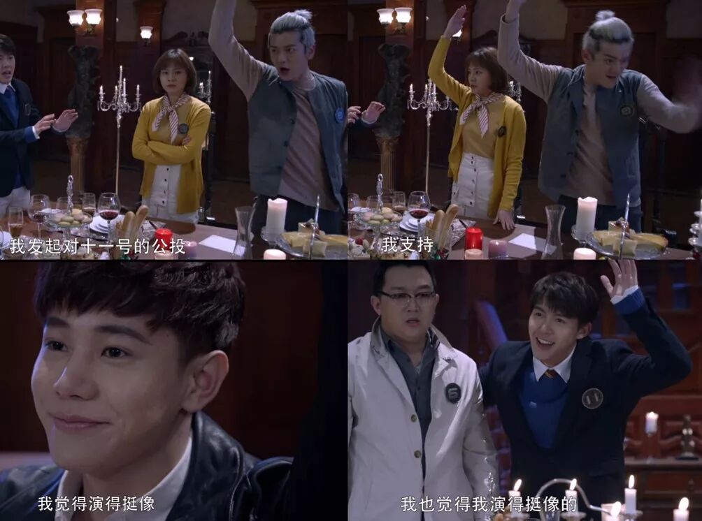 此时场上只剩下主角711CP,没脑子的38CP,以及唯一的单身狗【6号侦探大叔】。这时我们臭不要脸的主角【名侦探小夏】又出招了,竟然冲【6号大叔】做了个wink。我擦,这么骚的操作都能想得出来?38CP一脸懵逼:心想原来你们才是一伙的!谁说同伙就一定要分到一组!【大叔】终于不再沉默,苦口婆心地劝说38CP“求求你们投【7号】吧,叔给你们跪下啦!”