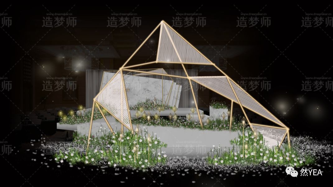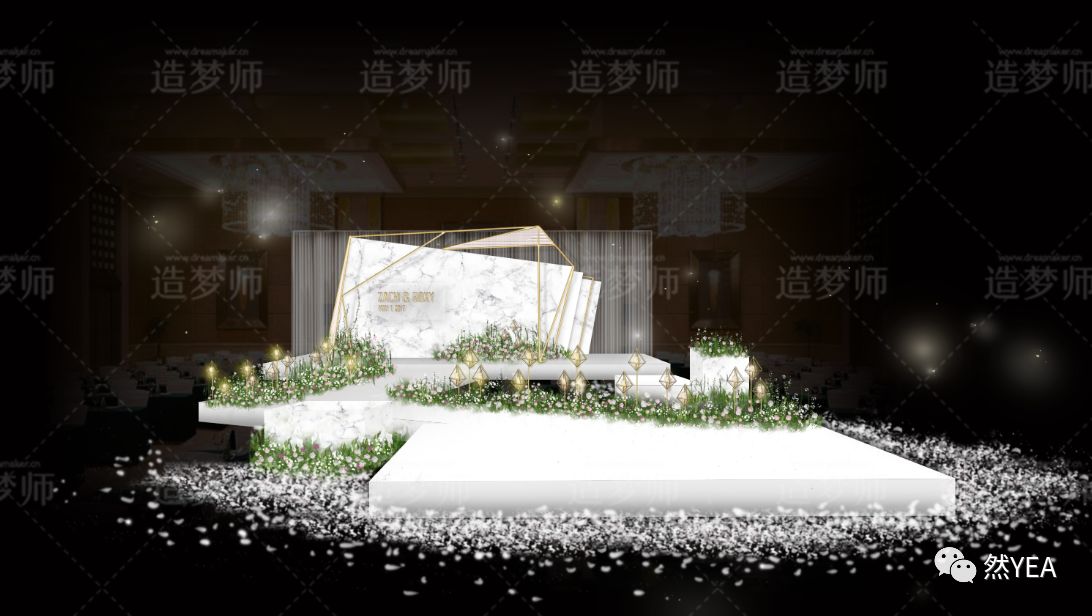 沟通之后,确定走北欧系,造梦师团队决定用大理石、白纱、金属三种元素来构建场景。