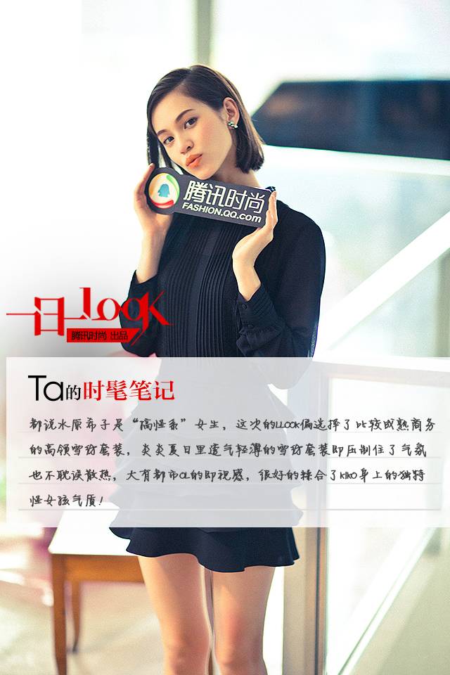 Kiko这次的look是黑色雪纺上衣,说起雪纺总会让人联想到高贵、典雅、淑女之类的词汇,然而我们酷炫狂霸拽的水原必须是依然不落俗套的!脚蹬罗马凉鞋身着蛋糕裙的她用雪纺衫演绎了一把夏天里的Q弹爽滑,端庄严肃一眼就是满满的风情!