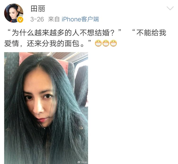 如今,历经坎坷的田丽早已把婚姻看淡,她犀利地总结现代人不愿意结婚的原因是:不能给我爱情,还来分我的面包。