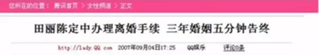 离开了相恋四年的马景涛,田丽遇到了比她大12岁的陈定中,并在2003年结婚。