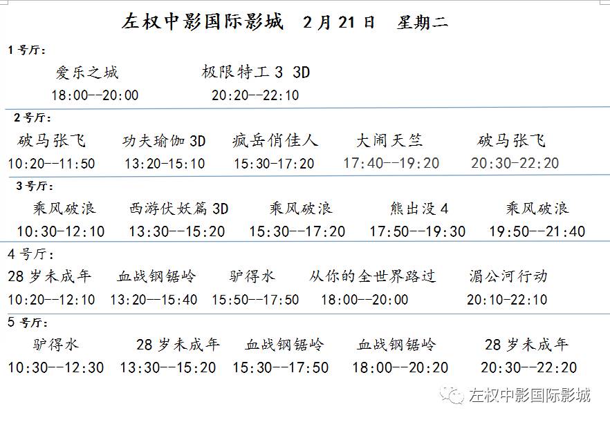 左权中影国际影城 2月21日 星期二