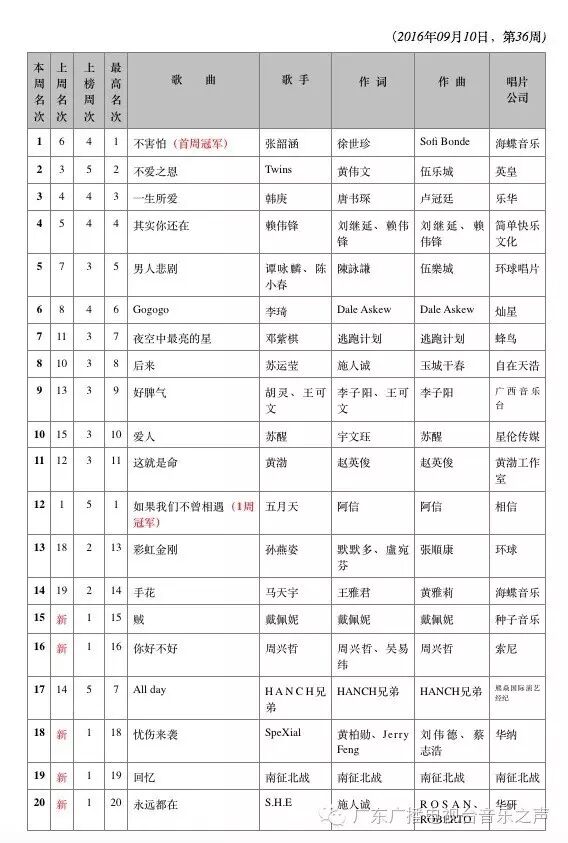 音乐先锋榜|第36周成绩揭晓 :张韶涵首周冠军! 声报 港台女星 2016-09-11 20:32:44 446 创作不易,用心坚持,欢迎请BaGua喝几杯爱心咖啡!打赏并支持本文 打赏并删除本文 点击上方声报,进入广播的声动世界!音乐先锋榜本期榜单(2016年第36期):冠军: 张韶涵 —《不害怕》亚军:Twins —《不爱之恩》季军:韩庚 —《一生所爱》来源:广东广播电视台音乐之声微信号:声报更多精彩内容,请长按此处关注 创作不易,用心坚持,欢迎请BaGua喝几杯爱心咖啡!打赏并支持本文 打赏并删除本文 感谢您的支持鼓励,我会继续努力的!文章地址:用户邮箱:打赏金额:USDT 请输入数字点击”去打赏“,即可进行打赏支持本文章哦 张韶涵 About the Author 声报 功能介绍:权威的广播电视资讯/新鲜热辣的娱乐动态/富有品味的文化大餐/体贴实用的服务信息 Related Posts 全球华语歌曲排行榜 | 第866期成绩:五月天、萧敬腾夺冠 2017-05-07 17:36:29 音乐先锋榜|2017年第25周成绩揭晓:五月天、萧敬腾夺冠! 2017-05-07 17:36:29 音乐先锋榜|第36周成绩揭晓 :张韶涵首周冠军! 2016-09-11 20:32:44 好期待 梁永斌加盟体育节目?! 2016-06-20 17:42:30 李克勤 容祖儿:爱·表述(内有专访音频……) 2016-06-02 22:13:05 发表评论