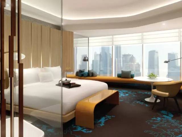 120间客房全部位于一座由Foster事务所操刀的40层塔楼最顶部的12个楼层里,其中的至尊宝格丽套房面积超越了400平米,会跃居上海上空最大的酒店套房之列。